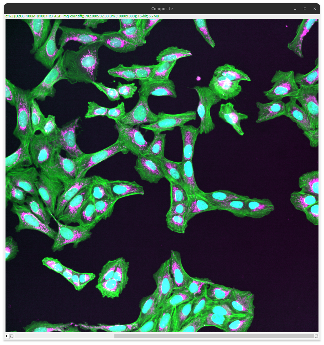 Further, the image is missing key annotations. The cells shown are physical objects that have dimensions that can be expressed in specific units. This is not readily apparent to the viewer with the image alone. Particularly if the image figure might also show enlarged views or other images that show results of other imaging modalities (e.g., electron microscopy, light microscopy). Finally, other critical information is also not readily apparent to the viewer, for instance, what cell line is shown (U2-OS) or what the colors mean (Green = Cytoskeleton, Magenta = Mitochondria, Cyan = Nucleus).