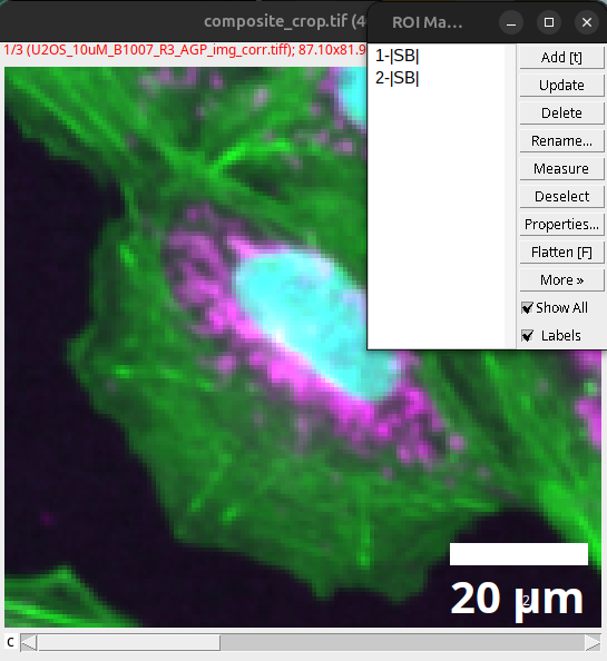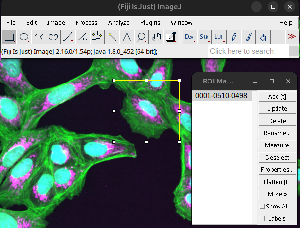Alternatively pressing “t” on the keyboard will also open the ROI Manager and add the current active ROI.