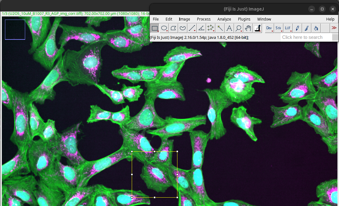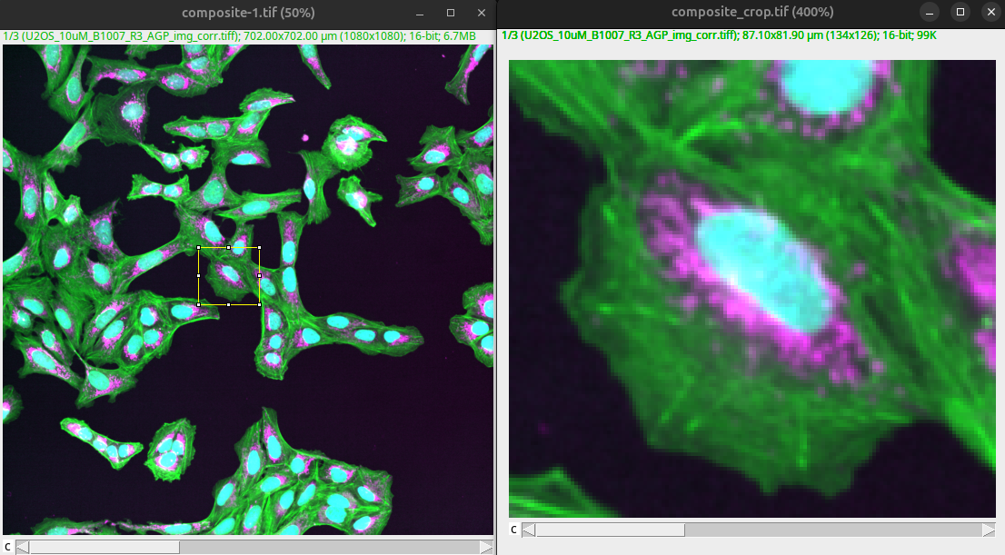 We now have the overview image as well as the crop that shows the details of one representative cell.
