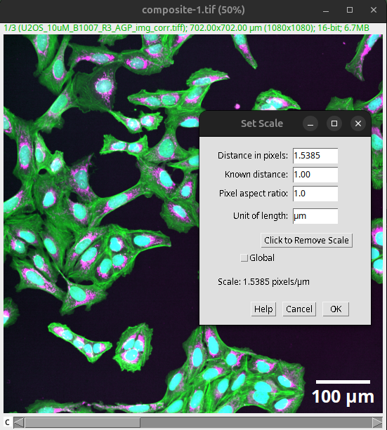 Fig. 35 Verify and set the correct pixel size before creating scale bars.#